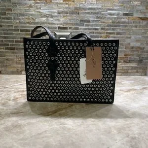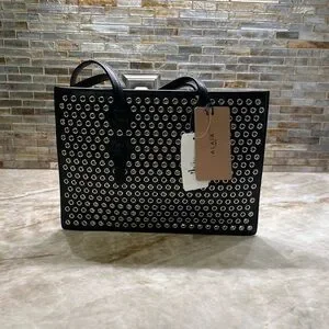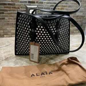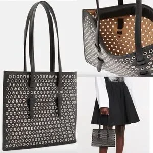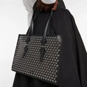 Alaïa presents a tough-luxe take on the everyday tote with the Mina Small bag. Made from calfskin, this slim-profiled design is punctuated with open studs that will reveal glimpses of your essentials.