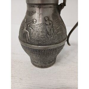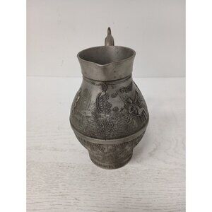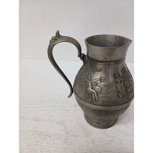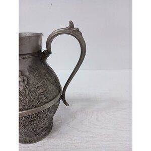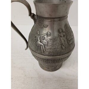 Vintage Frieling Zinn Germany Pewter Handled Pitcher Etched Design Victorian