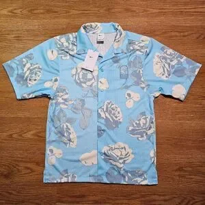 Nike Rose City Mesh Button-Up Shirt Dri-Fit Floral Men's Medium Blue FJ1650-499