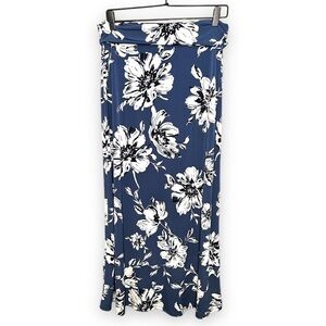 LE Lis Blue and White Floral Maxi Skirt, Size Large