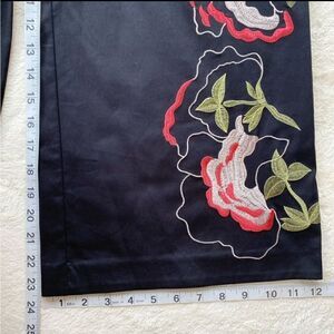 NWT Natori Woman Black Floral Embroidered Wide Leg Crop Pants Size 4