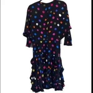 Gillian 100% Silk Vintage 80’s polka dot Ruffle midi Dolman sleeve dress size8
