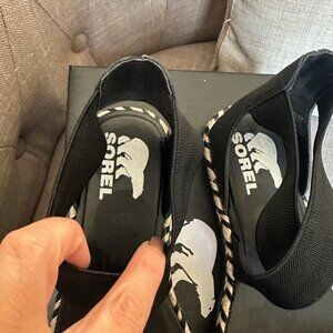 Sorel Sandals Womens 9.5 Black White ELLA II Ankle Strap Leather Shoes NIB