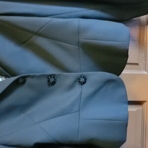 Blazer has 3 velvet buttons in front. Measures Pit to Pit 21 inches. Shoulder to Hem 22 1/2 inches. Wool is very light. NWT.(The price is the price on this one)