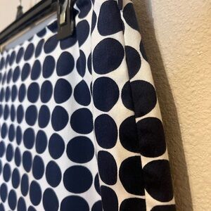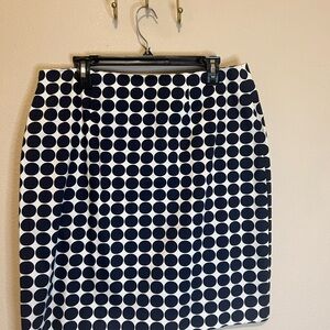 This elegant pencil skirt by Anne Klein features a bold navy blue and white polka dot pattern, perfect for work or cocktail events. The mini/knee-length design offers a sophisticated silhouette, while the structured fabric ensures a polished look.