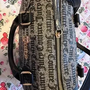 Juicy Couture Black and Gray Satchel with Monogram Print