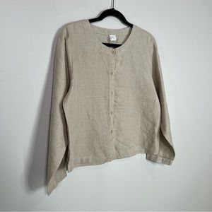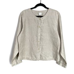 EILEEN FISHER Natural Short Round Neck Button Front Lightweight Jacket