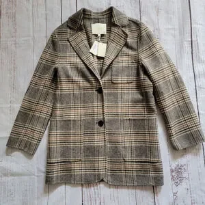 Maje Garion Plaid Wool Blend Blazer Nuetral Collared Women's 36 NWT
