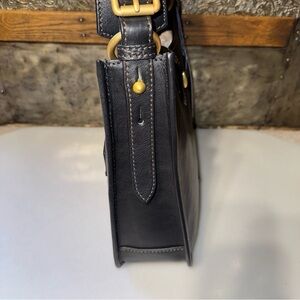Elegant black leather shoulder bag with a sleek design. Perfect for any occasion.