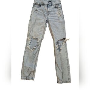 American Eagle Super High-rise Ankle StraightDistressed Denim Blue Jeans Size 00
