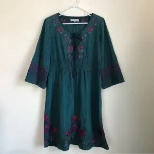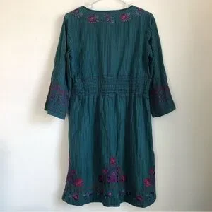 Johnny Was 3J Workshop Blue Stripe Embroidered Dress Size Medium