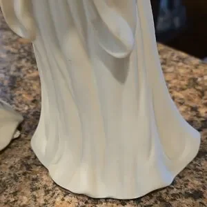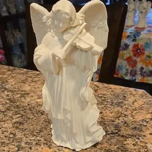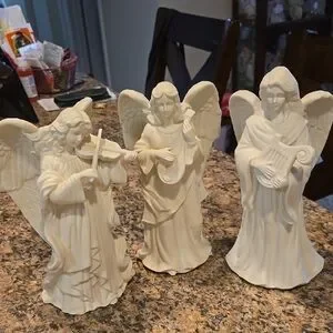 Beautiful set of three white angel figurine candlesticks by Partylite. Each angel holds a musical instrument. Original owner in smoke-free, pet free home. Have been on display in curio cabinet, never burned any candles in them. Excellent condition, like new. Partylite big seller in the 1980s. Made of bisque porcelain. They are each 10" high, 5" wing span. Felicity #P7363 plays the violin, and 2 others are lyrical angels. P0199 plays the mandolin, and #P0461 plays the harp. Please ask questions for any additional details.