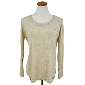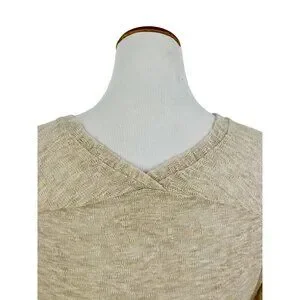 Lush Beige Long Sleeve Lightweight V-Back Knit Sweater Top