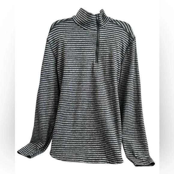 Lululemon Men’s Large 1/2 Zip Pullover Black Heathered Gray Stripe