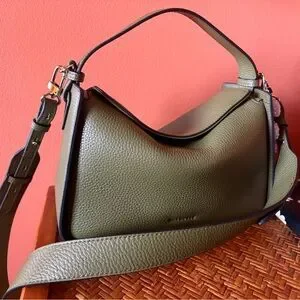 Experience the refined craftsmanship of The Horse with this green shoulder bag, showcasing a luxurious pebbled leather texture. Its slouchy silhouette and minimalist design offer a perfect blend of style and functionality for everyday use. The detachable wide shoulder strap adds versatility and comfort to this elegant accessory.