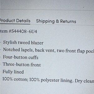 This tweed blazer is the perfect polished layer- easy to wear for work or play. Beautiful deep blue navy color.