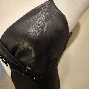 Vintage La Belle Black Snakeskin Dress With Fringe Trim At Bodice