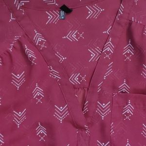 Maurices Maroon & White Semi Sheer Blouse