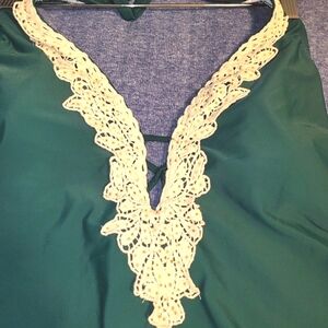 Emerald color with beautiful cream colored lace work.