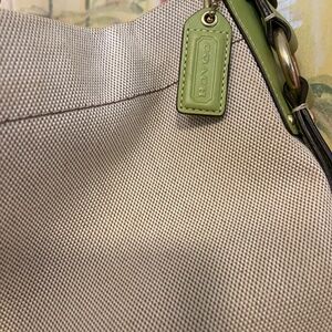 Coach Carly: Creamy Off White Canvas & Lime Green Leather shoulder bag. Pre-🤍💚