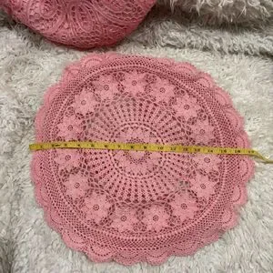 This lot of 4 vintage pink round crocheted, battenburg lace and square pillowcases is a unique addition to any crafting or sewing project. They are Perfect for adding a touch of vintage charm to your home decor, these cozy pillowcases are sure to bring a whimsical and feminine touch to your bed or couch.