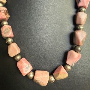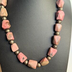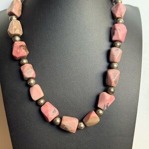Bold Chunky Rhodonite and Silver Tone Beads Necklace