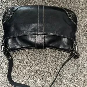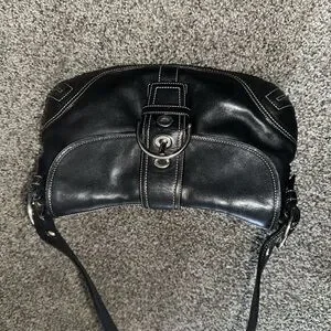 Authentic Coach - Black Leather Handbag with Silver Buckle
