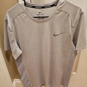 Stay comfortable and dry with the Nike Men's Gray Dri-FIT Running Shirt. Perfect for workouts and casual wear, this shirt offers a sleek design and moisture-wicking technology. Shirt is in good condition.