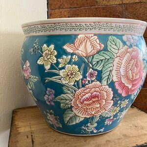 Chinoiserie Fish Bowl Planter, Asian, Chinese, floral planter