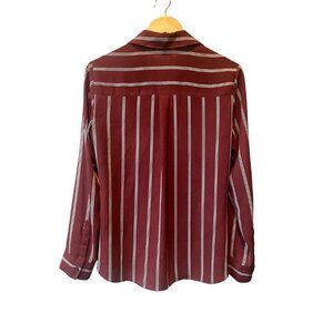 Express Portofino Maroon Red Black Striped Button Down Long Sleeve Top Blouse