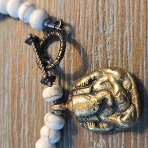 Really nice handmade bracelet that was purchased at a wine festival featuring artisans. It's easy to put on andctake off. it's a cool piece of casual jewelry that'll provide a little visual interest to your outfit. The charm features an elephant. Bracelet is in excellent shape!