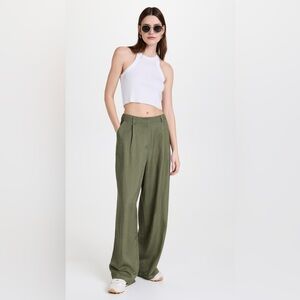 Lioness La Quinta Linen Pants High Rise Wide Leg Trouser Lightweight Olive Green