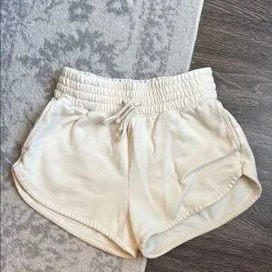 Comfortable and stylish cream shorts perfect for casual wear. Features an elastic waistband for a snug fit. Soft af collection. Size small, pale yellow color. Good condition