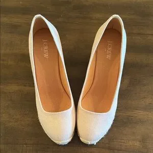 These J. Crew espadrilles feature a sophisticated cream color and a timeless design. With a comfortable flat sole, they are perfect for daily wear. Their minimalist style ensures versatility for any occasion.