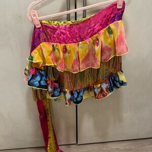 The skirt has a flattering wrap style with tie closures, making it adjustable for different sizes. Perfect for beach days, festivals, summer outings, or as a statement piece for your bohemian wardrobe. The lightweight, flowy fabric creates beautiful movement when worn.