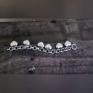 Elegant silver bracelet with heart charms. Perfect for any occasion. pre-owned in good condition.
