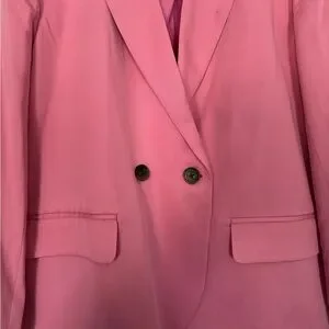 In a world full of neutrals, you are the exclamation point. This J.Crew Factory pink blazer is not for the faint of heart—it’s for the power dressers, the spontaneous brunchers, and the ones who RSVP “yes” just for the outfit opportunities. Crafted from a tailored silhouette that means business, this double-breasted beauty features tortoiseshell buttons, sleek front flap pockets, and that polished, structured feel that takes you effortlessly from boardroom to birthday bash.