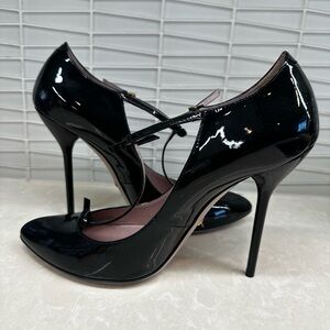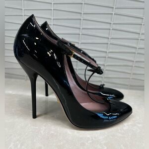 Step out in style with these elegant black patent leather shoes from Gucci. Perfect for any occasion, these shoes offer both comfort and sophistication.