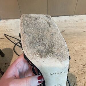 Square-toe heeled sandals with lace-up. All leather, so the sole does show some wear (as pictured). Size 39.