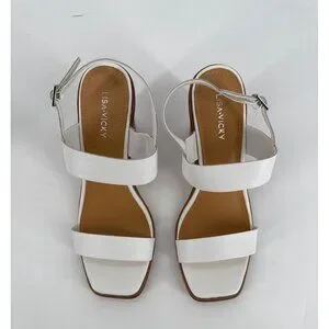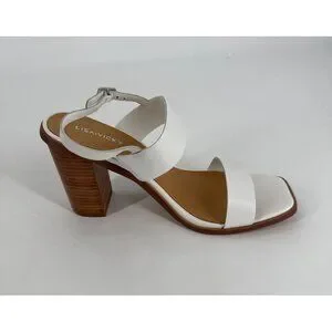 Lisa Vicky Womens Slingback Sandals White Heeled Square Toe Size 9 Oasis