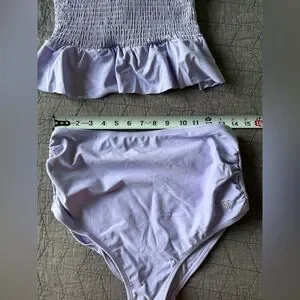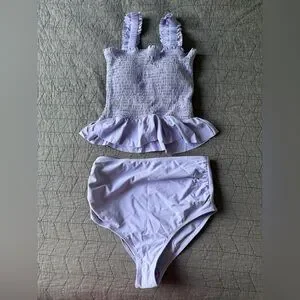 NWT 2 piece bathing suit from Rad Swimwear. Lilac purple color. Smocked Midikini Tankini Styke with high waisted ruched bottoms. Top is size medium, bottom size large.