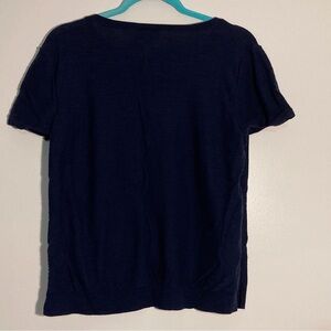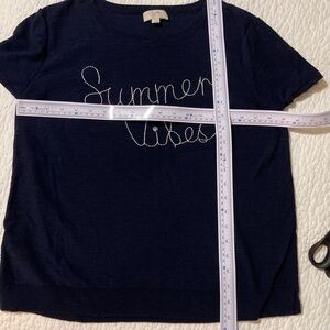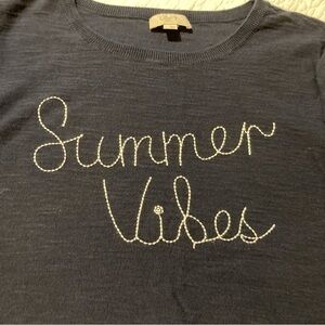 LOFT Outlet Navy Blue Sweater Tee with Summer Vibes Stitching | Size L