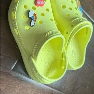 Girls yellow crocs with charms!