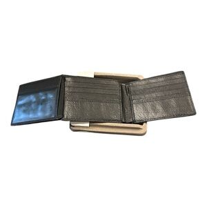 Fossil NIB Black leather Bi-fold with extra flap Kyle traveler wallet. WLT4