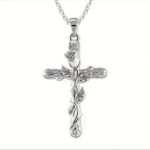This exquisite necklace showcases a silver-toned cross pendant with an intricate vine-like design, offering a romantic and vintage-inspired aesthetic. The pendant's textured surface mimics intertwined branches, adding a touch of nature-inspired elegance. Suspended from a simple silver chain, this piece is a perfect blend of artistry and spirituality. 1.41” tall. 20” chain.