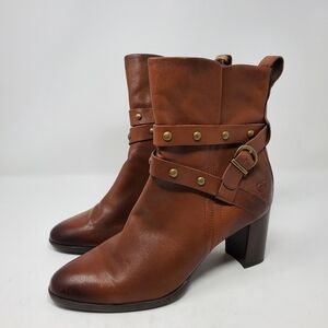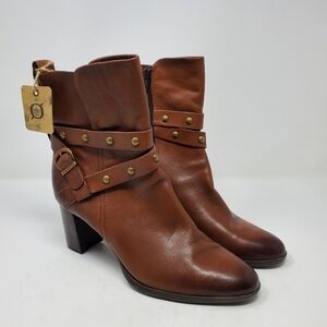 Born Emma Block Heel Bootie Cognac Brown Leather Women's Size 11M