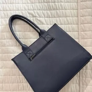 Wrangler Navy Blue Faux Leather Tote Bag with Braided Detail