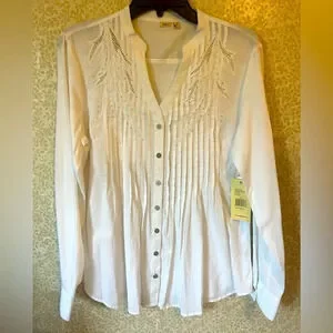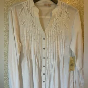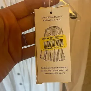 Reba embroidered cut out knit woven tunic small COTTON