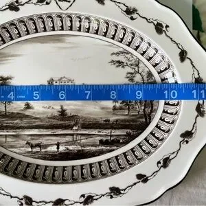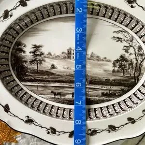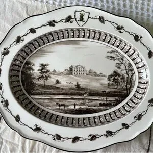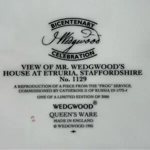 This limited edition platter is in new condition as it has never been used. It has been been displayed only. It is 30 years old, and one of 3000 that were made. It is number 1129 and the pattern name is ‘A View of Mr. Wedgwood’s House at Etruria, Staffordshire’.