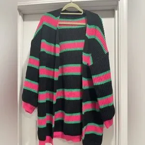 Striped Black, Pink, and Mint Green Women's Sweater Cardigan